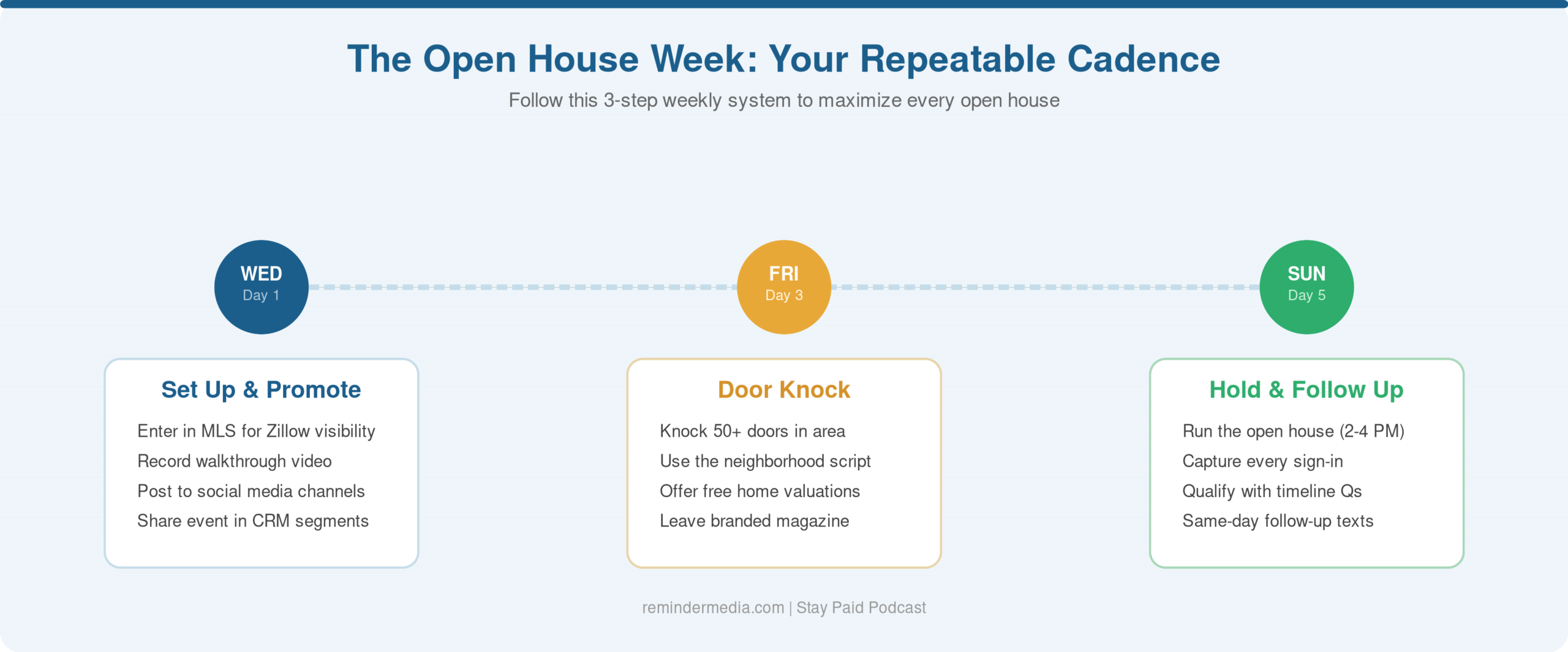Ready to build your open house system? Download the free ReminderMedia Open House Kit at remindermedia.com/openhouse — including sign-in sheets, Canva templates for signage, and the Acree Brothers’ open house SOP.
