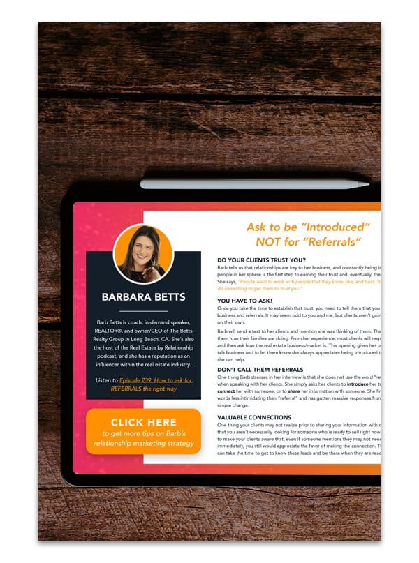 This guide offers actionable advice from the interviews of 5 top producers on how they get referrals for their business.