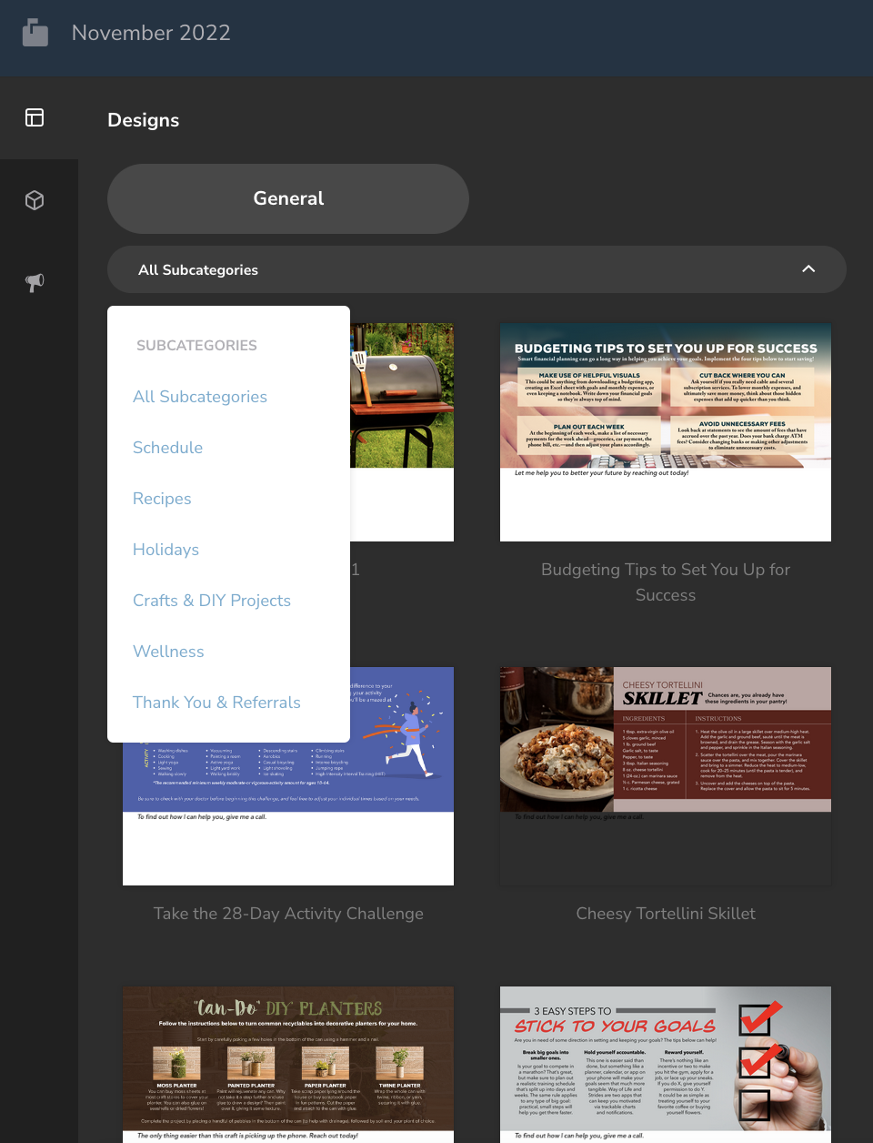 5. From here, you will be able to browse through our library of pre-made designs. Make sure to select the “All Subcategories” button to see all your available choices.