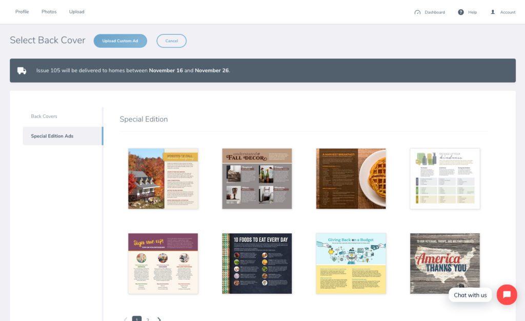 6. You can also select from a variety of Special Edition ads for that issue. On the left-hand sidebar under the ad type, select the option called Special Edition Ads. To select a special edition ad, simply follow the same steps listed above.