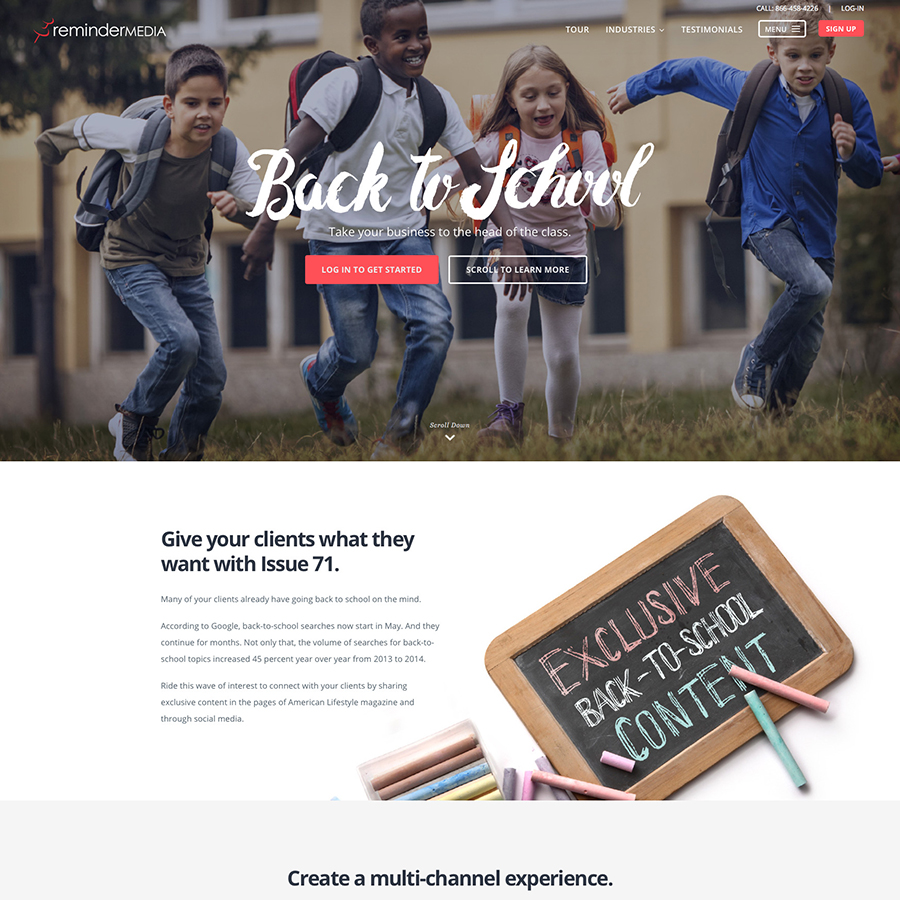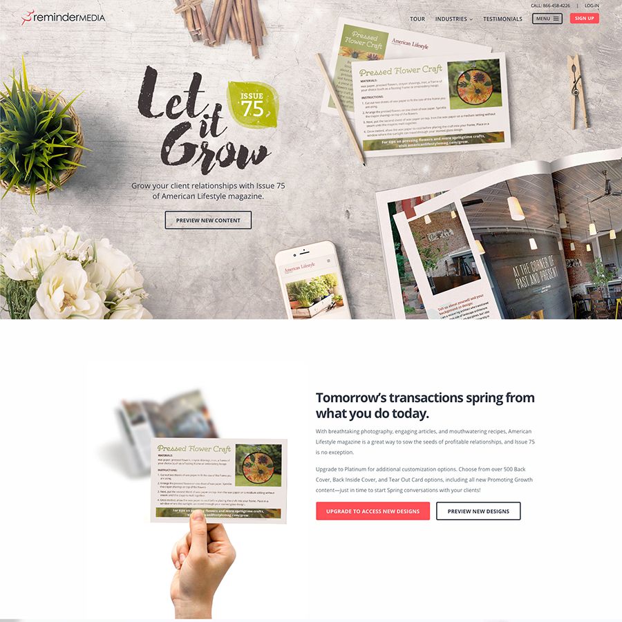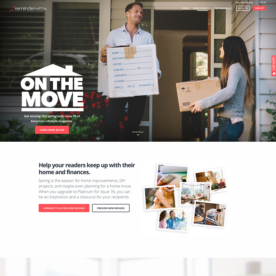 Core pages of ReminderMedia.com; Start Trial, Digital Preview, etc.