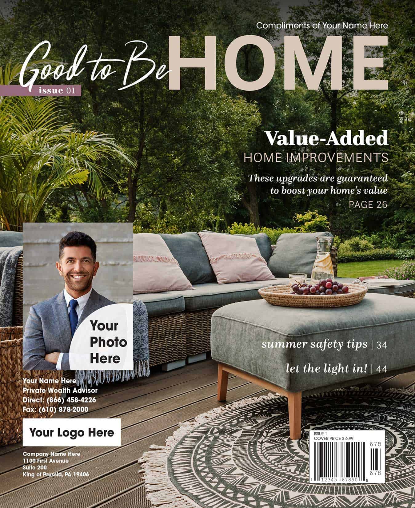 Connect with your past clients and prospects on a regular basis by sending them a free bimonthly subscription to your very own magazine! This stunning 48-page personally branded publication features articles on travel, art, food, and design.