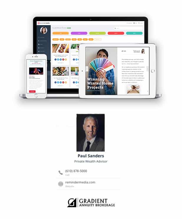 Stop losing past clients and contacts to the competition because you didn't stay connected in a meaningful way. Join more than 100,000 professionals who have used a ReminderMedia customizable publication to stay in touch with their contacts.