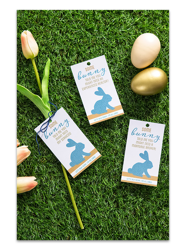 Simply print, add your business card to the back, and attach these tags to a box or bag of Easter candies, a flower, or even an Easter basket. Then, give them out to your favorite past and current clients or prospects!