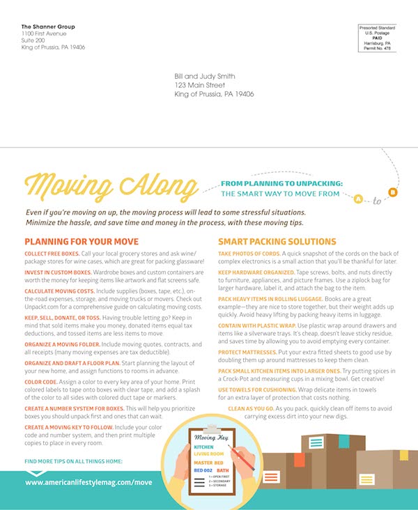 Help your clients make moves to get their homes sale ready, get their finances in order, and more with Making Moves themed Back Cover, Back Inside Cover, and Tear Out Card options.