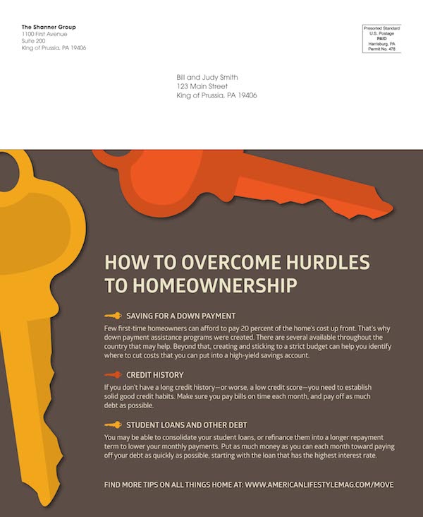- Homeownership Resources includes concepts that will benefit your entire mailing list, whether recipients are in the market to buy or sell, are staying put, or are welcoming new neighbors.