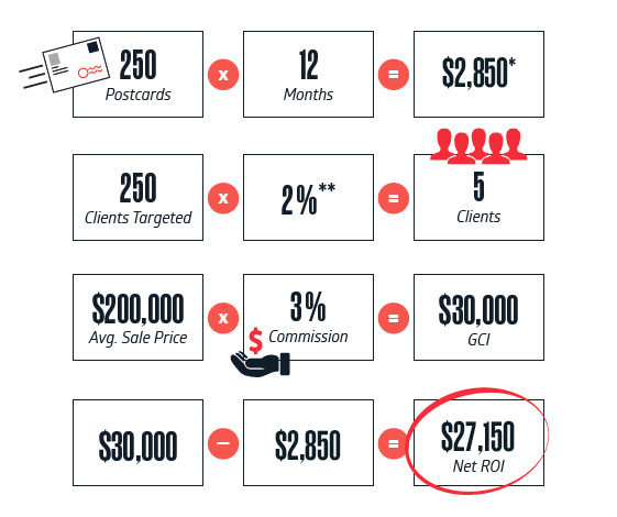 when you send 12 direct mail pieces to your farm over 12 months, you should receive 1 transaction for every 50 recipients.*